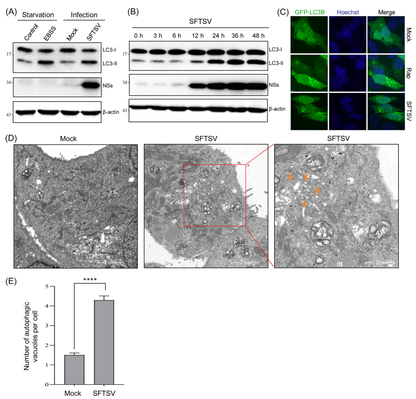 2022年11月,国际学术期刊Journal of Medical Virology在线发表了中科院武汉病毒所、湖北江夏实验室团队的最新成果,论文题为“SFTS bunyavirus NSs protein sequestrates mTOR into inclusion bodies and deregulates mTOR-ULK1 signaling, provoking pro‐viral autophagy”。该研究提高了我们对病毒自噬相互作用的认知,也可能为从自噬的角度设计针对严重发热伴血小板减少综合征布尼亚病毒(SFTSV)和相关病毒的精准抗病毒疗法提供新的线索。