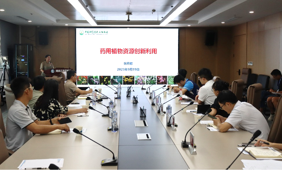 张燕君研究员带来了一场题为“药用植物资源创新利用”的学术报告,介绍了淫羊藿、白及等药用植物资源、毒品原植物的创新与利用,课题组成功构建了淫羊藿遗传转化体系,毒品原植物的资源库、品种鉴定等方面为公安等系统提供了有力支持,建立的重要药材研发与产业体系链有望形成大品种、大产品、大产业。在交流环节中,张燕君研究员与参会师生围绕淫羊藿分类学的不同药效、白及的产业化推广和社会经济价值等方面分享了她专业的见解。