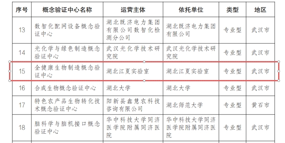 近日,湖北省科技厅发布《关于培育建设2025年度湖北省概念验证中心的公示》。经运营主体申报、地方推荐、会议评审和实地核查等程序,全省共31家单位入选,依托湖北江夏实验室组建和运营的全健康生物制造概念验证中心成功获批!